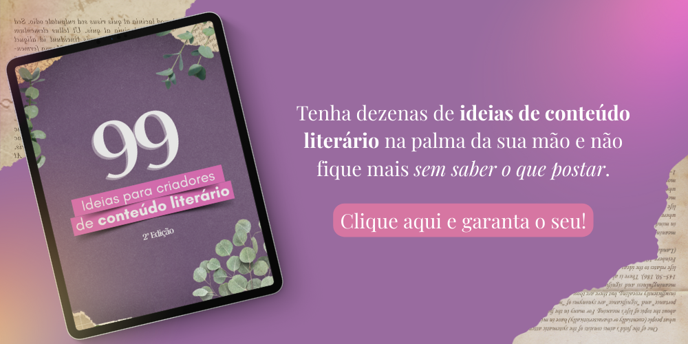 Aliás, tenho um post pronto com várias ideias de conteúdo literário para você começar a preencher seu caderno. É só clicar aqui e botar a mão na massa!